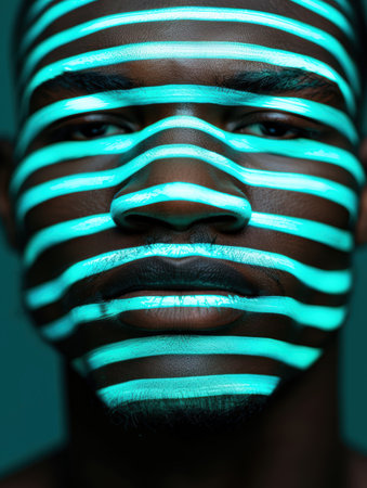 Striking face with vibrant neon stripes