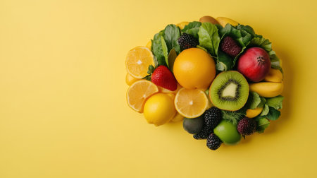 Conceptual image of brain shape made entirely of nutritious fruits, overhead flat lay
