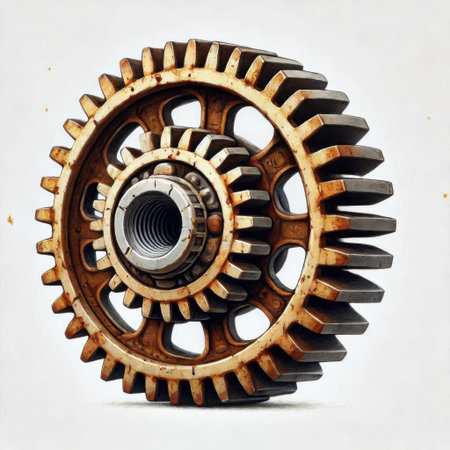 A close up of a bunch of gears that are rusty, AI
