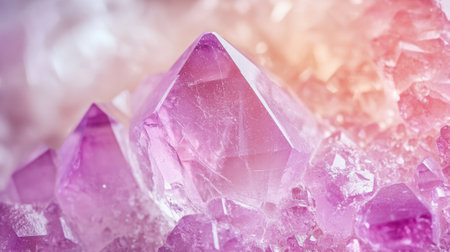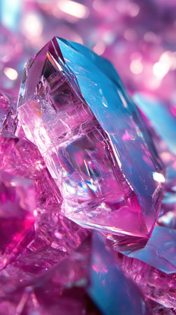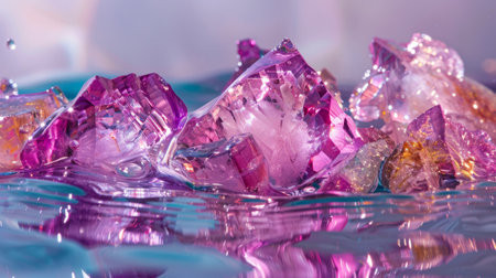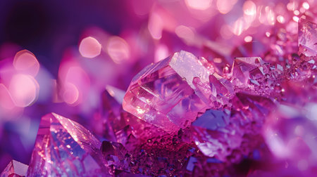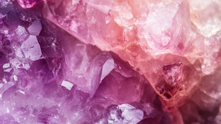 Close-up view of translucent pink and purple crystals creating an abstract and vibrant scene. ideal for use in design, background textures, and modern art inspiration. Generative AI