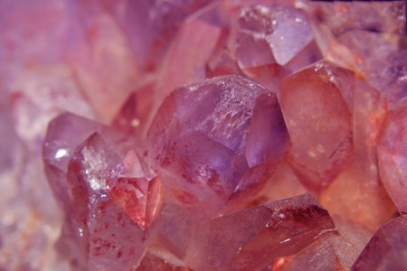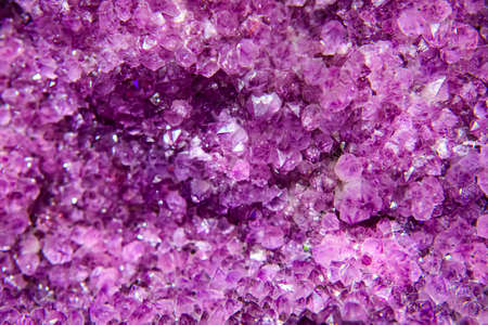 amethyst crystals geological mineral background. Abstract texture of gemstone.