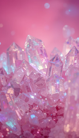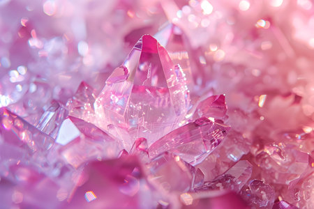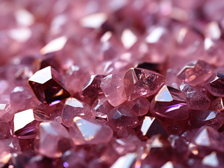 A close-up of sparkling pink crystals, showcasing their intricate structure and beauty.