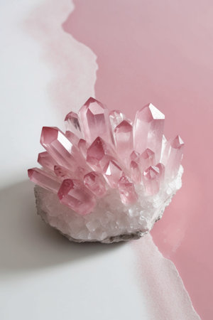 Stunning collection of pink quartz crystals showcasing natural beauty and shimmering elegance. Perfect for crystal enthusiasts and home decor inspiration. Generated A.I.