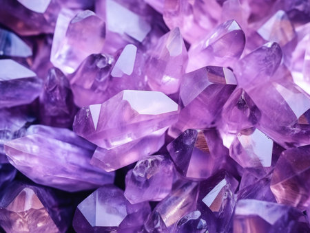Abstract textured background with crystals. Shiny amethyst and quartz minerals