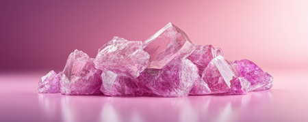 A dazzling pile of transparent pink crystals, shimmering gemstones, and vibrant minerals. Their radiant glow and intricate facets create a magical, luxurious, and enchanting atmosphere.