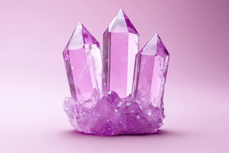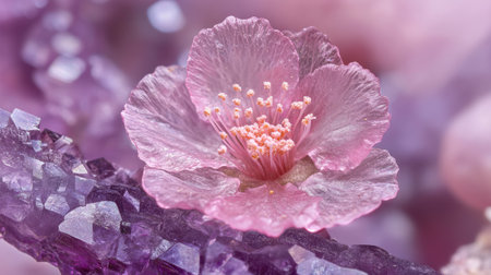 AI Generated. Purple crystals on soft pink background with natural light reflections and textures