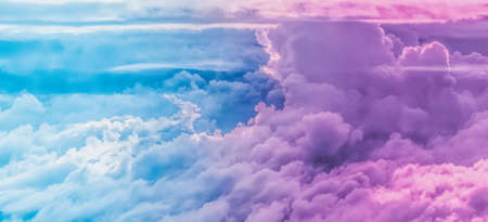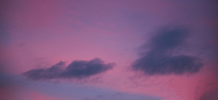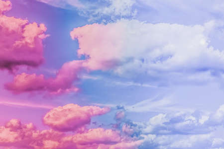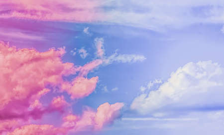 Majestic sunset or sunrise landscape amazing light of nature cloudscape purple sky. Picturesque of pink fluffy clouds moving softly on the clear sky.