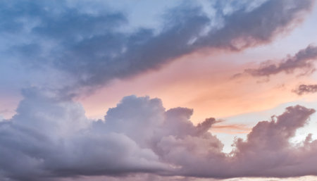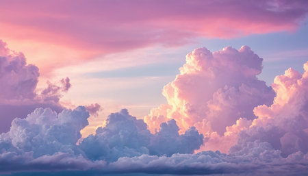 Captivating view of soft pink and blue clouds at sunset, creating a serene atmosphere. This image captures the beauty of nature's sky and its calming effect.