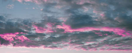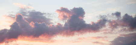 Beautiful sunset sky with clouds. Panoramic view of the sky.