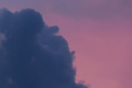 Dark blue cloud against the pink evening sky after the rain nature color background.
