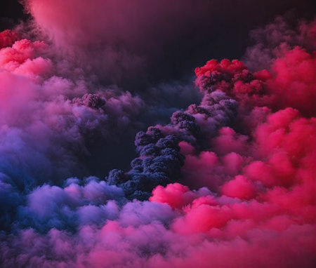 Clouds of colored smoke. An abstract background that creates an enchanting and mysterious atmosphere, drawing you into a cloudy world of colored dreams. AI generated.
