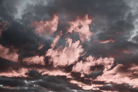 Bright pink sunset sky. The texture of clouds before a storm.