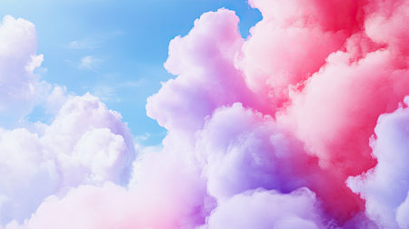 A captivating composition of soft pink and purple clouds contrasting with a bright blue sky. This dreamy scene evokes a sense of tranquility and beauty. Perfect for backgrounds and art projects.