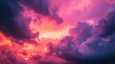 A breathtaking image of vibrant pink and purple clouds during a dramatic sunset, creating a stunning natural spectacle.