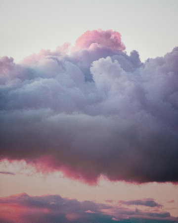 A breathtaking view of sunset clouds showcasing soft pink and purple hues against a serene sky at dusk, perfect for nature-themed projects or artistic inspirations.