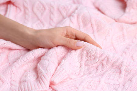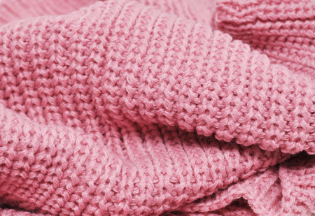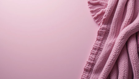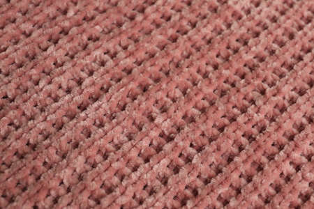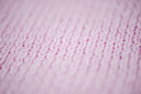 A delicate closeup of soft pink knit fabric, thoroughly showing its unique texture and cozy appeal in detail