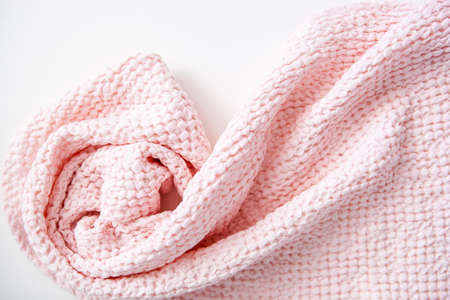 Cashmere texture, natural wool, pink cashmere scarf folded, top view, concept of warmth and winter comfort