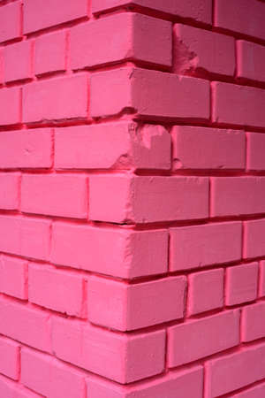 Pink brick wall. Loft interior design. Pink paint of the facade. Architectural background.