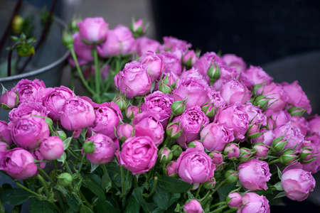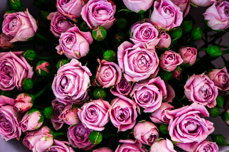 light pink violet bush roses flowers as a background. Beautiful summer bouquet. Arrangement with mix flowers. The concept of a flower shop. Content for the catalog