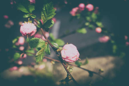 beautiful spring twig of a shrub with pink delicate almond flowers