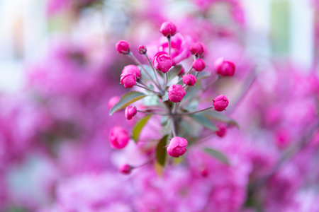 A selective focus shot of pink flower buds in spring