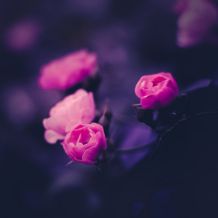Small pink rosebuds on a black background, nature