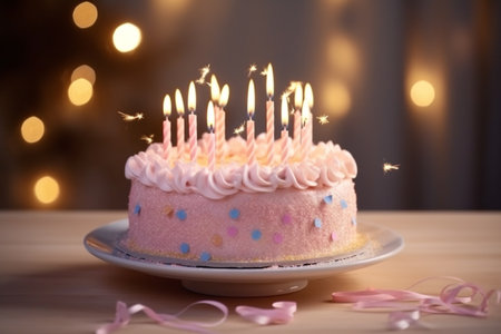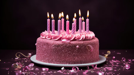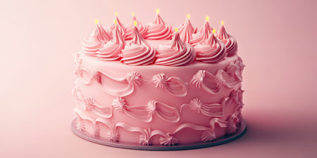 Beautiful pink birthday cake with frosting and candles perfect for celebrations