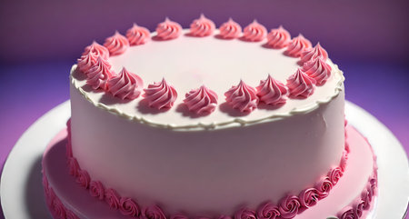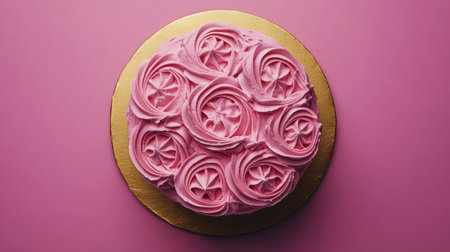A stunning pink cake adorned with rose-shaped frosting, ideal for celebrating birthdays and special occasions. The vibrant colors make it visually appealing and enticing.
