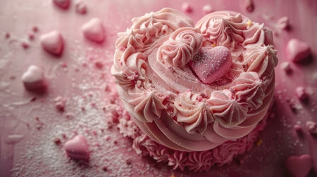 AI Generated. a pink heart shaped cake on a pink table - valentines day concept