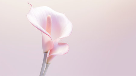 a lily white flower stands out against a light pink background, creating a soft and dreamy atmosphere. rendered in the style of filip hodas and joong keun lee, this artwork showcases smooth curves and a romantic landscape. the beauty of this piece is truly mesmerizing. ai generated