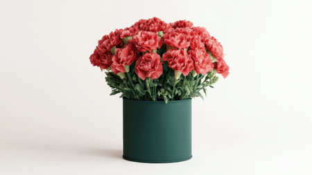 Charming carnation bouquet arranged in a modern green container