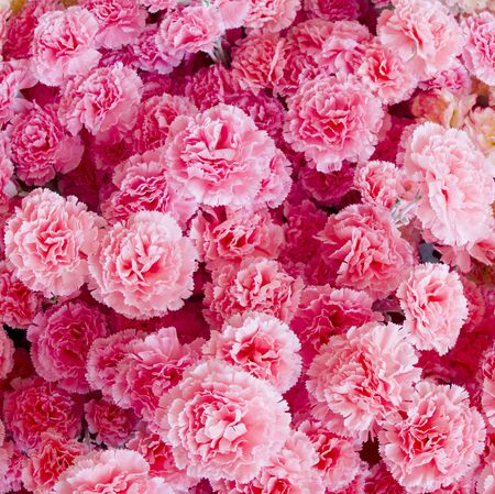 Pink carnations on pink background. Mothers Day background.