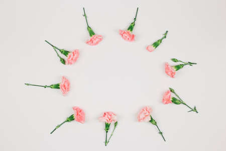circular carnations flower frame isolated white background