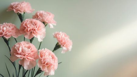 AI Generated. Blush pink carnations on pale green background with copy space
