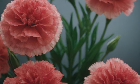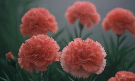 A stunning display of coral carnations proudly showing their beauty in full bloom.