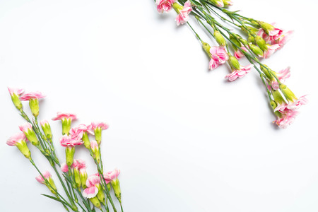 Carnation flowers on white background with space for your text.