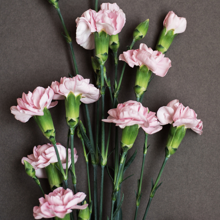Pink carnations close-up on a gray background