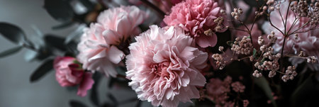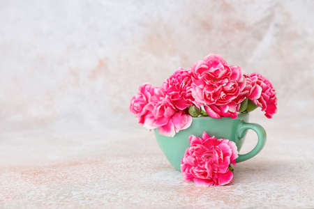 Pink carnations flower bouquet with soft light filter for background and wallpaper. Flora blossom and fresh concept.