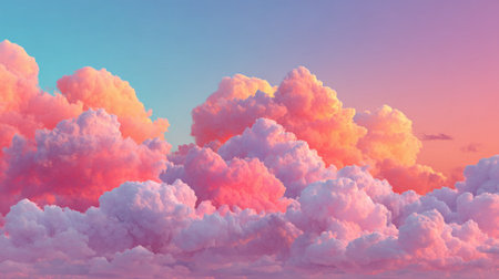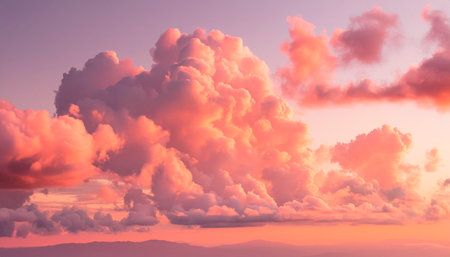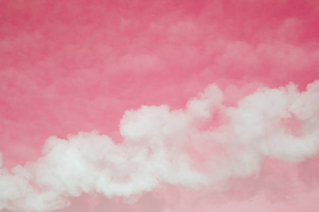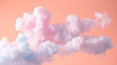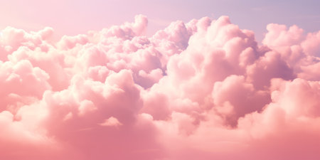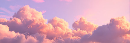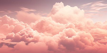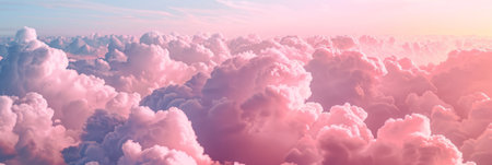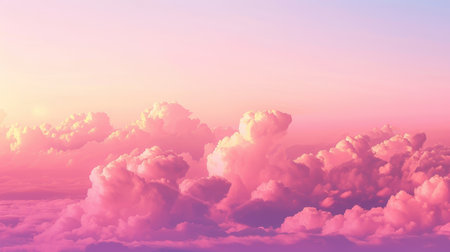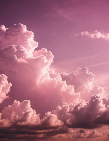 A stunning depiction of pink clouds floating in the sky, evoking the softness of fluffy cotton candy. The scene creates a dreamy, fantasy-like ambiance with pastel tones, ideal for serene,