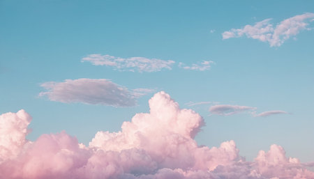 A serene, pastel sky filled with layered pink clouds and gentle light creates a tranquil backdrop. Soft gradients and airy tones evoke calm, inspiration, and wonder. This versatile image works well for branding, advertising, editorial layouts, and lifestyle storytelling without a specific subject.