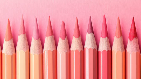Row of color blackwood pencils at the right of the image on pink background with copy space. Education concept