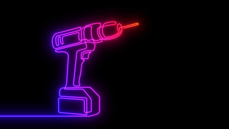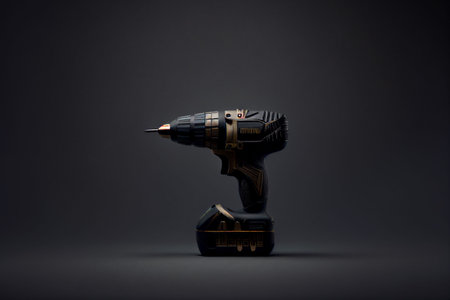 An AI generated illustration of an electric drill in a dark setting against a pitch-black background