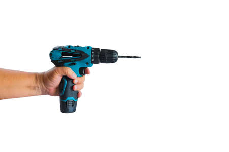 Hand hold a cordless drill for worker device tool.