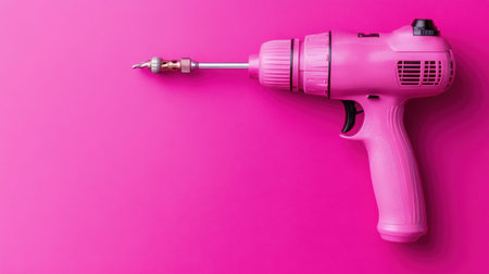 A vivid pink electric drill placed on a striking pink surface, perfect for showcasing creativity in home improvement and DIY projects.