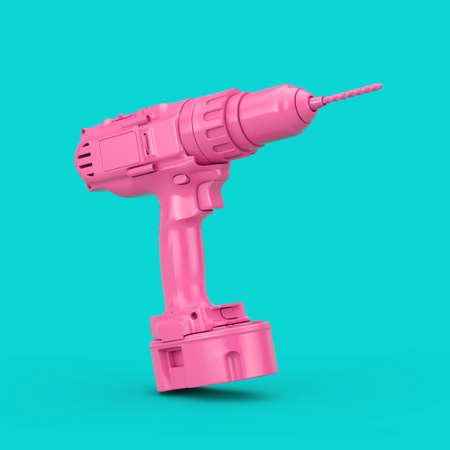 Pink Rechargeable and Cordless Drill in Duotone Style on a blue background. 3d Rendering