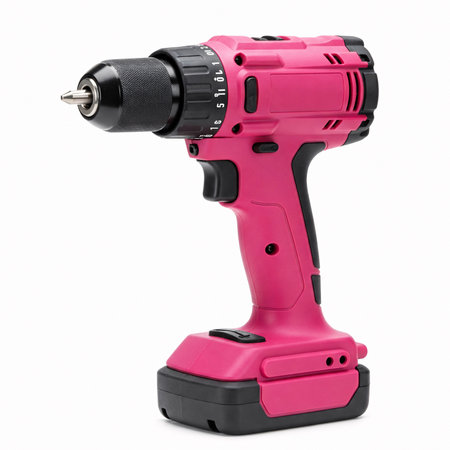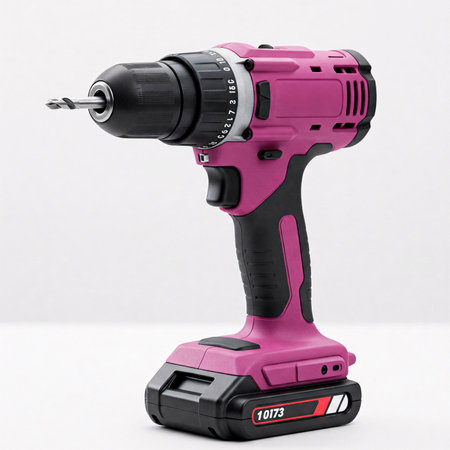 A vibrant pink and yellow cordless electric drill, perfect for DIY home improvement projects. Ideal for both beginners and professionals.