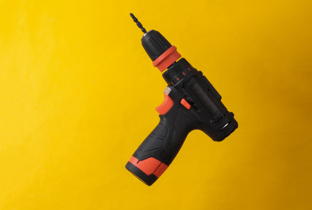 Cordless screwdriver isolated on yellow background