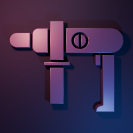 Purple Electric drill machine icon isolated on purple-blue background. Repair tool. Minimalism concept. 3D render illustration.