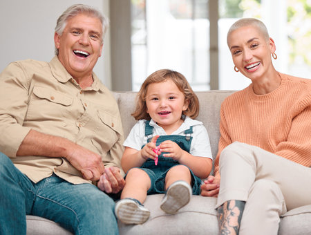 We dont take loving lightly. Portrait of a mature man bonding with her daughter and grandson on the sofa at home.
