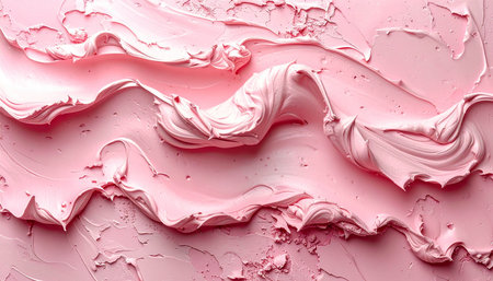 The luxurious texture of soft pink cream is beautifully swirled, enhanced by delicate bubbles, evoking a sense of indulgence and elegance.